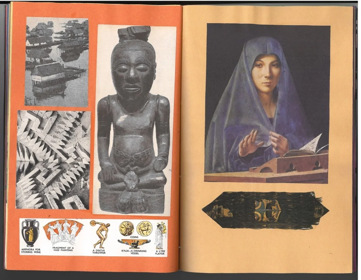 Collage on sugar paper with marbled cover